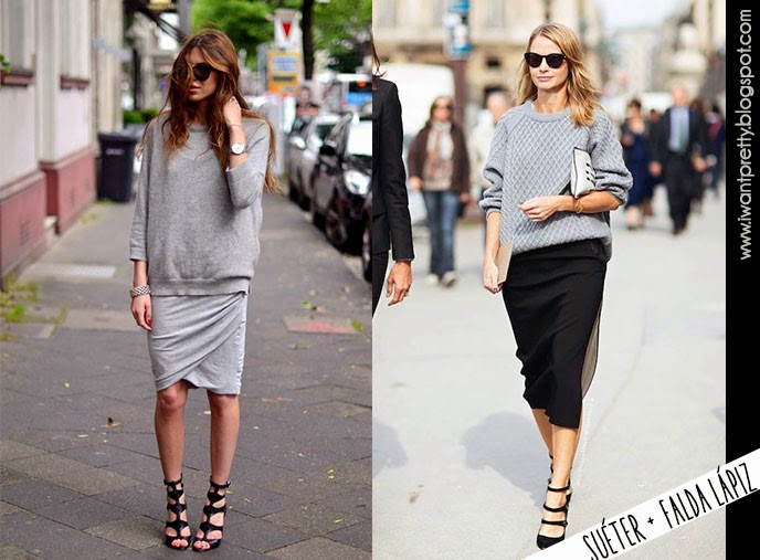 1.-¿Primavera? El clima está más loco de lo normal, si ya estás enfadada de las medias, jeans y leggings entonces anímate a usar una falda midi con un suéter, ponte una blusa linda debajo por si de repente sale el sol.