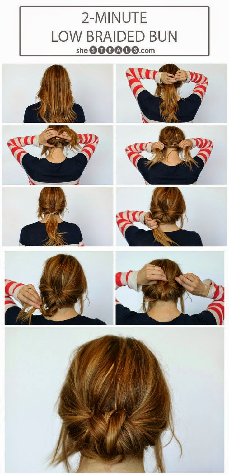 Tal vez este sea de los más “complicados”, pero si eres hábil con eso de los peinados inténtalo, lo mejor de este tipo de recogidos es que no te debes de preocupar por nada, si se cae el chongo, si se deshizo el nudo,… solo asegúralo bien con pasadores y lo puedes traer todo el día sin problema de que pase algo.