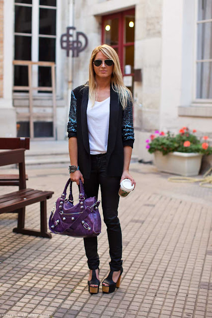 Este outfit es perfecto para el día o la noche, como las lentejuelas solo están en las mangas no hay problema de usarlo para ir al trabajo (áreas creativas preferentemente) o para en la noche agregando accesorios llamativos y maquillaje marcado.