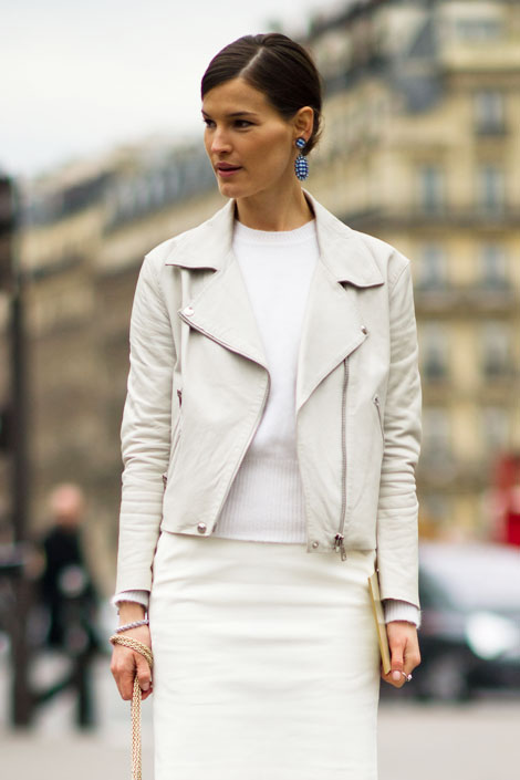 Aún siendo un color claro,un pantalón largo y zapatos del tono te alarga muchísimo.