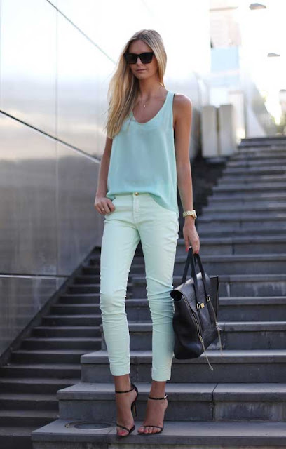Zapatos menta que realmente se pierden con el blanco pero le dan un toque trendy con el color pastel.